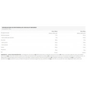 Ingredienti - Gusto Brownie al cioccolato: copertura di cioccolato al latte (33%) (edulcorante (maltitoli), burro di cacao, latte intero in polvere, pasta di cacao, emulsionante (lecitine(di soia), estratto di vaniglia), caramello di fibra alimentare (15%) (polidestrosio (fibra), latte condensato, burro di coca, umettante (sorbitoli), emulsionante (mono- e digliceridi degli acidi grassi), aroma naturale, acqua, sale da cucina, colore (caramello semplice)), proteine del latte, collagene idrolizzato, patatine di soia al cacao (9,1%) (proteine di soia, cacao in polvere, amido di tapioca), umettante (glicerolo), acqua, proteine di soia, olio di cocco, cacao sgrassato in polvere (1,5%), aroma, sale.