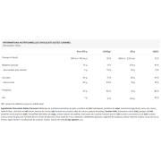 IngredientiCioccolato e caramello salatoUna miscela di proteine (proteine del pisello, proteine di grano proteina, idrolizzata soia), umettante (glicerolo), zucchero di canna, olio d'oliva, cioccolato fondente latte (zucchero, burro di cacao, latte latte scremato in polvere, pasta di cacao, grasso di palma, lattosio (latte), siero di latte dolce (latte), grasso da latte, proteine del siero di latte (latte), emulsionante (lecitina di soia), aroma naturale di vaniglia), pezzi di caramello fondente (zucchero, latte scremato condensato zuccherato (latte scremato, zucchero), sciroppo di glucosio, fondente (zucchero, sciroppo di glucosio, acqua), olio di cocco, destrosio, stabilizzanti (pectina, alginato di sodio), aroma naturale), inulina, sciroppo di zucchero invertito, agente lievitante: bicarbonato di sodio, aroma, estratto di malto orzo (glutine), sale.