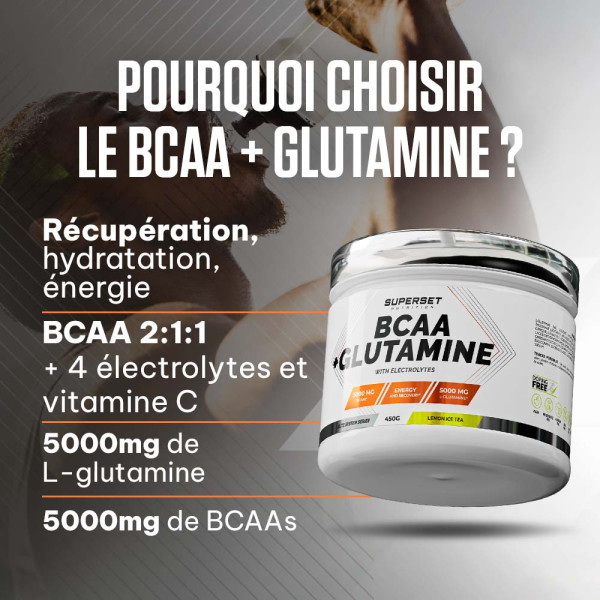 BCAA + GLUTAMINE (450G) di Superset Nutrition è un prodotto indispensabile per tutti gli atleti, siano essi triatleti, ciclisti, maratoneti o appassionati di bodybuilding. Questa formula contiene un'elevata dose di principi attivi per sostenere la resistenza, ma non solo!