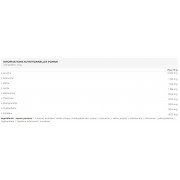 Ingredienti - gusto lampone e limone: L-leucina, L-lisina cloridrato, acidificante: acido citrico, L-isoleucina, L-valina, aroma, L-metionina, L-treonina, L-fenilalanina, L-triptofano, L-istidina, edulcorante: sucralosio.