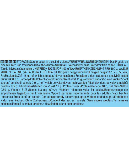 Senza zuccheri aggiunti, sono perfettamente adatte alle diete per la perdita di massa muscolare e di peso, contenendo solo 190 kcal e 11 g di carboidrati per barretta. Sono inoltre prive di lattosio e di glutine, ideali per chi è alla ricerca di queste qualità.