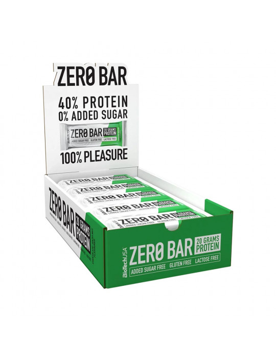 La confezione di Zero Bar (20x50g) del marchio Biotech USA sono deliziose barrette proteiche. Con un elevato contenuto proteico derivante dalle proteine isolate del siero di latte e dall'albume d'uovo.