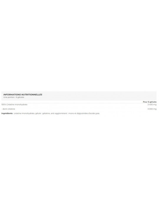 100% creatina monoidrato - di cui creatina | 3.400 mg 3.000 mg |
