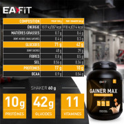 Gainer Max (1,1 kg) è un gainer della gamma di integratori alimentari del famoso marchio francese EAFIT.