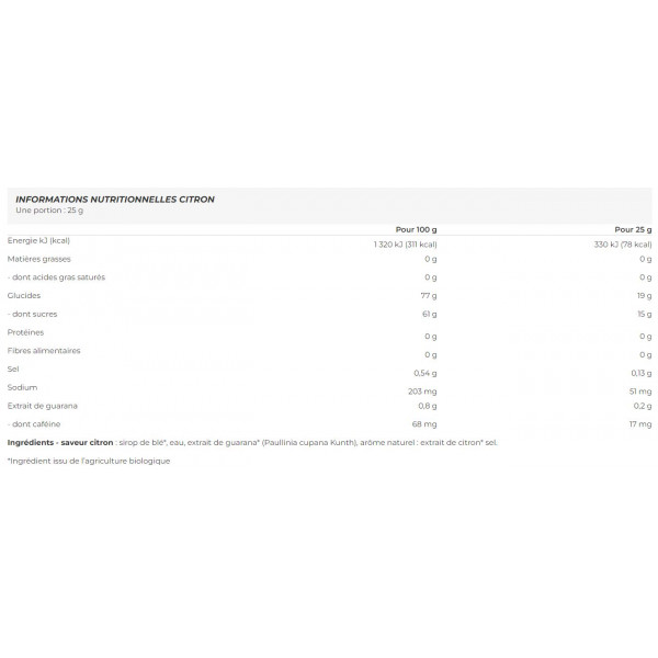 Peso netto : 25 gConsumare 1 Bio Gel Speedtonic quando ci si avvicina a una difficoltà, a una fase finale o quando si è stanchi, seguito da 200 ml di acqua per un comfort digestivo ottimale.