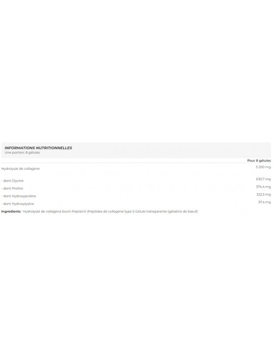 Il collagene garantisce inoltre il corretto funzionamento della pelle, ne preserva l'idratazione e combatte l'invecchiamento. Il collagene peptide di tipo 1 (120 capsule) è un integratore di qualità, realizzato con materie prime brevettate e prodotto in Francia.