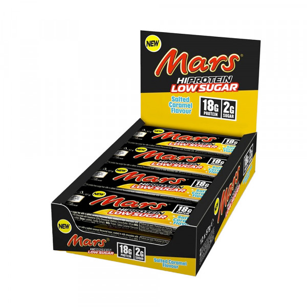 Mars High Protein Low Sugar (12x55g ) è una versione a basso contenuto di zucchero e ad alto contenuto proteico della famosa barretta Mars.