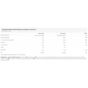 Ingredienti - gusto doppio cioccolato: farina di frumento, proteine del latte, zucchero di canna, glicerina vegetale, gocce di cioccolato fondente (8%) [pasta di cacao, zucchero, emulsionante (lecitina di soia), aromi], olio di oliva, peptide di glutammina(frumento), olio di cocco, acqua, inulina (radice di cicoria), cacao in polvere, agente lievitante (bicarbonato, cremor tartaro), aromi.