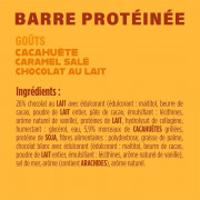 Ingredienti - Caramello salato al gusto di arachidi26% cioccolato al LATTE con edulcorante (edulcorante: maltitolo, burro di cacao, latte in polvere) LATTE massa di cacao, emulsionante: lecitine, aroma naturale di vaniglia), proteine del burro di cacao LATTE, idrolizzato di collagene, umettante: glicerolo, acqua, 5,9% di pezzi di CACAUETES alla griglia, proteine SOJA, fibra alimentare: polidestrosio, grasso di palma, cioccolato bianco con edulcorante (edulcorante: maltitoli, burro di cacao, cacao in polvere) LATTE emulsionante: lecitine, aroma naturale di vaniglia), sale marino, aroma (contiene ARACHIDI), aroma naturale.
