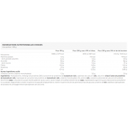 | Per 100 g | Per 230 g con 470 ml di acqua | Per 230 g con 510 ml di latte scremato | |