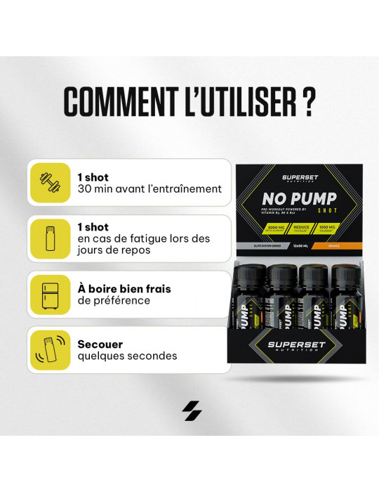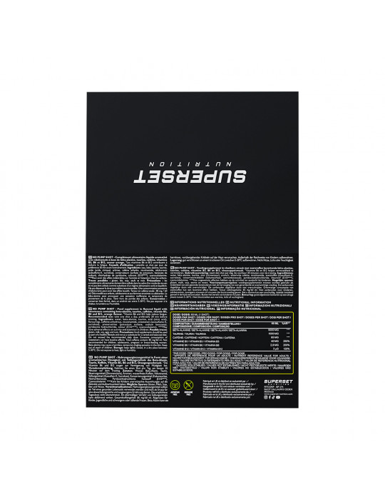 La confezione di shot NO PUMP (12X60ML) di Superset Nutrition è stata progettata per sostenere le prestazioni durante l'allenamento. Con ingredienti chiave per ogni shot, come:
