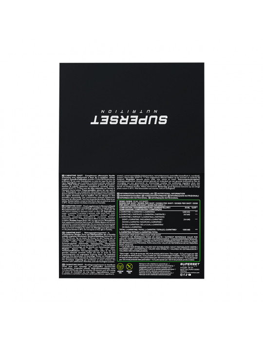 La confezione di CARNITINE shot (12X60ML), formulata dagli esperti di nutrizione del marchio Superset Nutrition, può essere utile per chi segue una dieta controllata o un programma di esercizio fisico intenso. È ideale se si vuole perdere peso o dimagrire. L'integrazione di L-carnitina può :