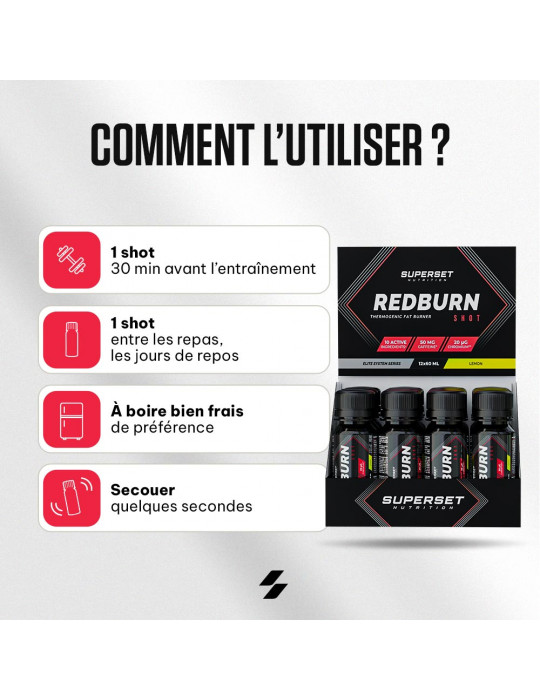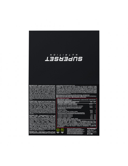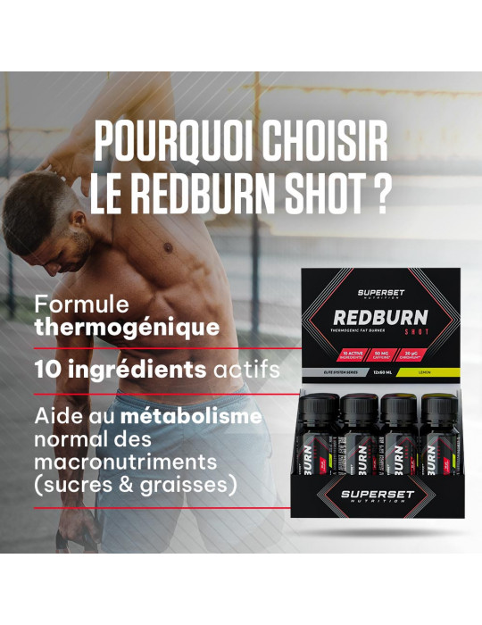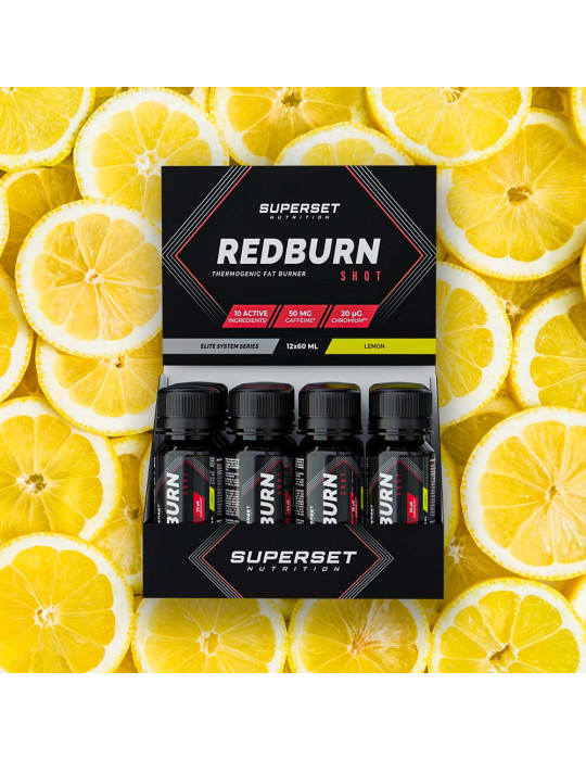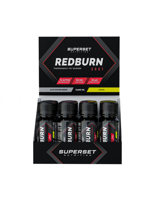 La confezione di REDBURN shot (12X60ML) di Superset Nutrition è studiata per aiutare a sostenere il metabolismo energetico durante il dimagrimento, la perdita di peso o la fase di magra. La sua formula comprende principi attivi spesso utilizzati nei prodotti dimagranti, come :