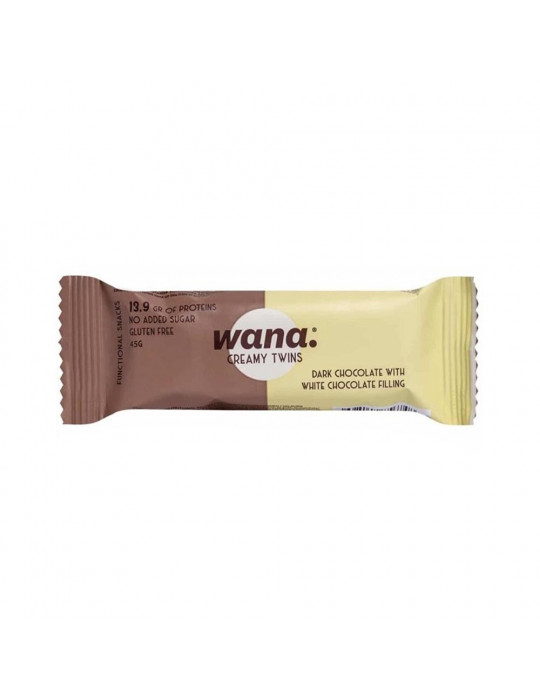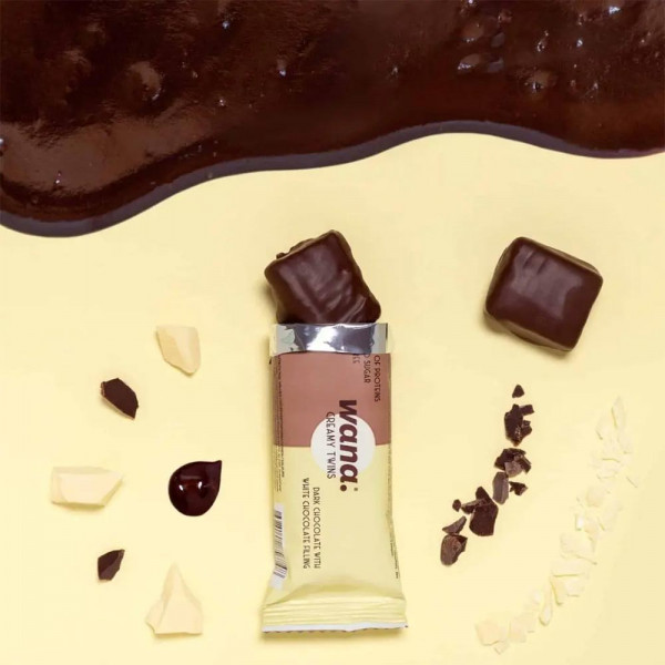I Creamy Twins (45 g) sono uno snack proteico composto da due caramelle, prodotto dal marchio Wana.