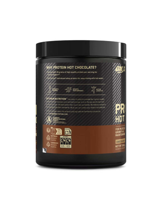 Cioccolata calda proteica (350 g) diOptimum Nutrition è la soluzione ideale per sostenere la crescita e il mantenimento dei muscoli, godendo del gusto delizioso del cioccolato.