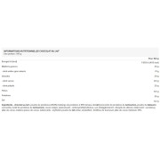 Ingredienti - cioccolato al latte: proteine in polvere (28,8%) [miscela proteica 85% [a base di latte] ( concentrato di proteine del siero di latte, latticello concentrato in polvere, isolato di proteine del siero di latte), cacao magro, addensante: carbossimetilcellulosa, sale, antiagglomerante: biossido di silicio, edulcorante: sucralosio], pasta di cacao, grasso di cacao, edulcoranti: eritritolo, latte intero in polvere, emulsionante: lecitina di girasole, minimo 35% di pasta di cacao.