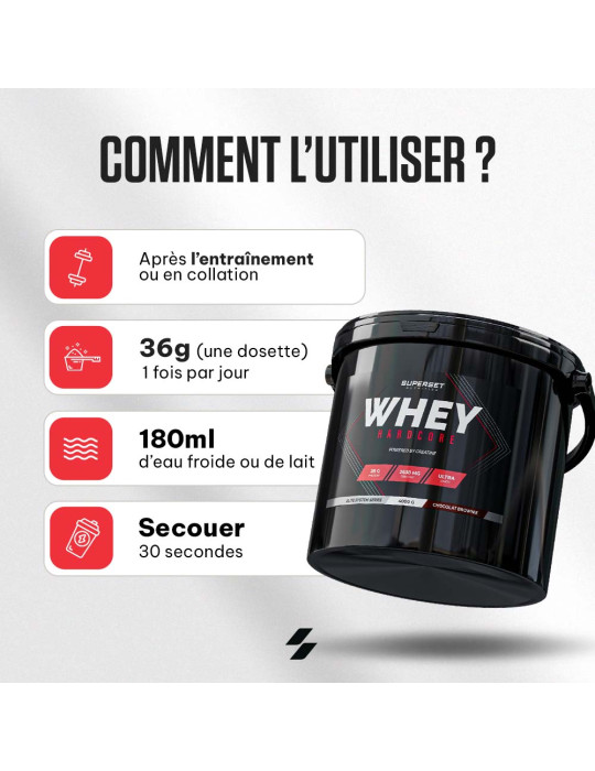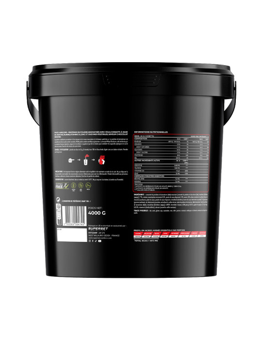Ingredienti Gusto brownie al cioccolato : concentrato di proteine del siero di latte (latte) {concentrato di proteine del grano (latte), emulsionante [lecitine (soia)]} 77%, creatina monoidrato micronizzata 8,3%, cacao sgrassato in polvere 5,9%, taurina 2,8%, aromi (contiene caffeina), fiocchi di cioccolato [saccharose, pâte de cacao, poudre de cacao dégraissée, émulsifiant (lécithines), beurre de cacao, lait entier en poudre] 2%, addensante (gomma di xanthan), sale, edulcoranti (sucralosio, acesulfame k), solfato di zinco, proteine isolate del siero di latte (latte) istantaneo {proteine isolate di frumento (latte), emulsionante [lecitine (soia)]} 0,083%, bromelina d'ananas (1200 gdu/g) 0,033%, papaina di papaia (1,5 fip u/mg) 0,033%, vitamina d (colecalciferolo), colorante (caramello solfito caustico).