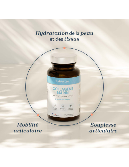 Il collagene marino Peptan® di Nutraclear è composto principalmente da collagene di tipo I, il tipo più comunemente presente nell'organismo. Aiuta a rigenerare le articolazioni e a mantenere la pelle soda e idratata. Grazie alla sua struttura peptidica, viene assimilato rapidamente per un'azione potenziata.