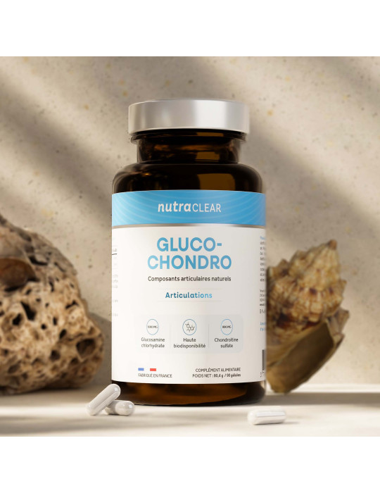 Gluco-Chondro del marchio francese Nutraclear è una formula studiata per proteggere le articolazioni, promuovere la flessibilità e mantenere la mobilità.