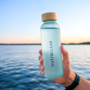 Elegante ed eco-responsabile, la bottiglia di vetro Nutraclear con tappo in bambù è perfetta per tutti i vostri momenti di benessere. Pratica e durevole, vi manterrà idratati per tutto il giorno e allo stesso tempo sarà una dichiarazione di stile.