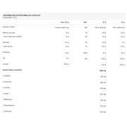 IngredientiNocciolaProteine isolate del siero di latte (latte) {proteine isolate di frumento (latte), emulsionante [lecitine (soia)]} 85%, L-glutammina 5,0%, cacao magro in polvere, miscela cremosa [grasso di cocco parzialmente idrogenato, latte polvere, emulsionanti (E471, E472a), sciroppo di glucosio, zucchero, proteine del latte, latte in polvere latte, stabilizzante (fosfati di potassio)], addensanti (gomma di cellulosa, gomma di xantano), aromi, sale, antiagglomerante (biossido di silicio), L-leucina 0,2%, edulcorante (sucralosio), L-isoleucina 0,1%, L-valina 0,1%.