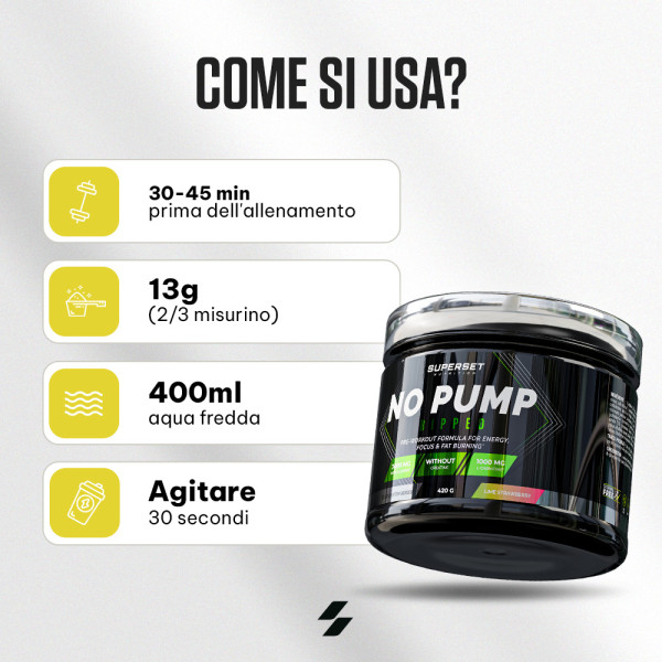 Spingetevi al limite ogni volta che vi allenate con No Pump Ripped (420g), un pre-allenamento a tripla azione sviluppato dal marchio francese Superset Nutrition, che combina energia esplosiva, congestione estrema e combustione intensiva dei grassi.