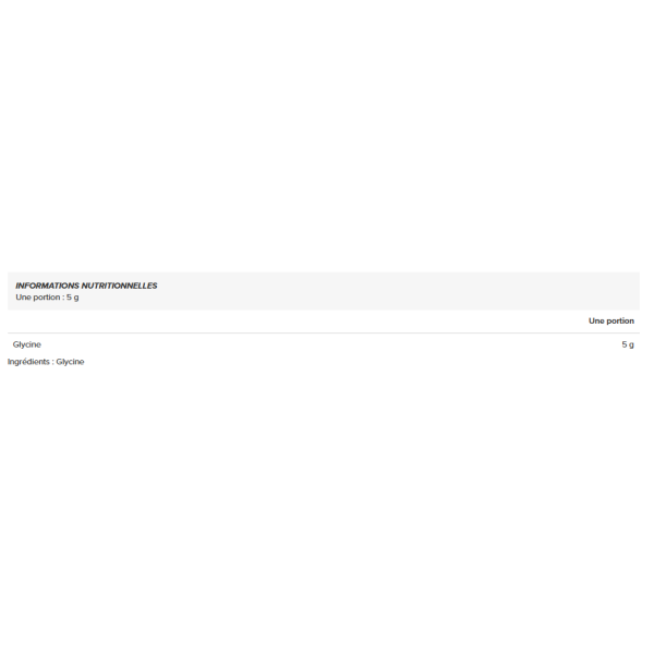Ogni porzione fornisce glicina pura al 100%, senza additivi, aromi, zucchero o dolcificanti. Questo aminoacido svolge un ruolo fondamentale nella sintesi delle proteine, in particolare del collagene, ed è inoltre coinvolto in numerosi processi metabolici essenziali. La polvere, dal sapore neutro, si scioglie facilmente in acqua, in bevande calde o fredde, oppure può essere aggiunta a uno shaker o a una preparazione alimentare.