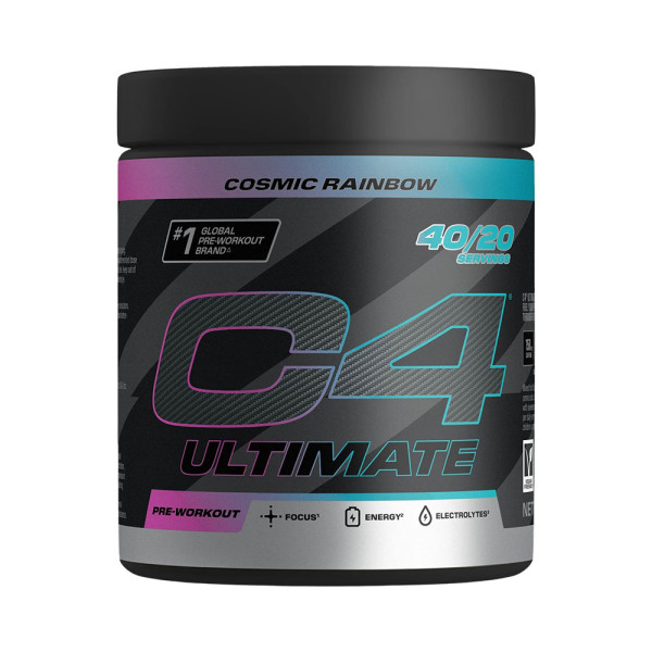 C4 Ultimate Cosmic Rainbow (380 g) è un potente pre-allenamento studiato per sostenere l'energia e la concentrazione prima dell'esercizio.