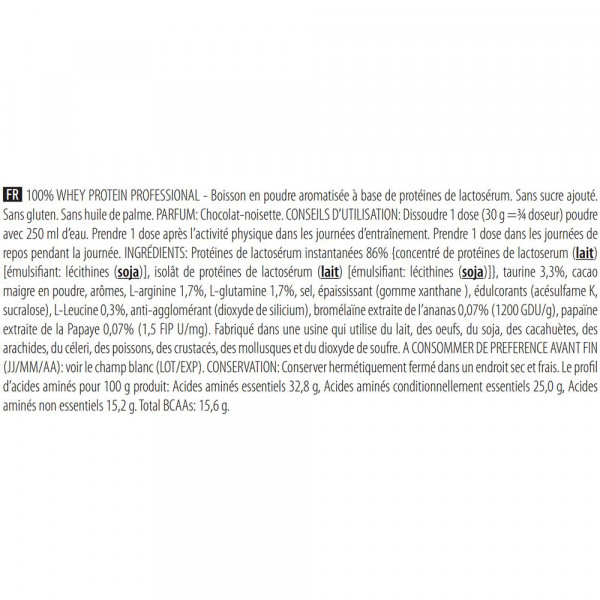Ideale per promuovere la crescita muscolare e l'aumento della massa magra, 100% Whey Protein Professional contiene tutti i nutrienti essenziali per lo sviluppo muscolare: aminoacidi essenziali e aminoacidi a catena ramificata, noti anche come BCAA (Istidina, Isoleucina, Leucina, Lisina, Metionina, Fenilalanina, Treonina, Triptofano, Valina), oltre a due enzimi digestivi per una perfetta assimilazione e digestione dell'integratore.