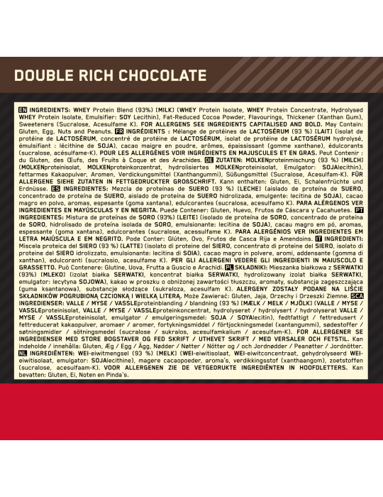 Grazie alla sua composizione, la proteina Whey Gold Standard è di qualità ottimale e agisce efficacemente per favorire lo sviluppo muscolare. Contiene solo 1,3 g di carboidrati e 1,4 g di grassi per porzione, un valore molto basso che aiuta a controllare il più possibile l'assunzione di zuccheri, in particolare durante i periodi di costruzione della massa muscolare magra.
