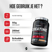 Neem één dosis van 50 g per dag (1 maatschep) verdund in ongeveer 250 ml koud water, bij voorkeur direct na de training of bij het ontwaken op rustdagen. Vergeet niet om gedurende de dag gehydrateerd te blijven.
