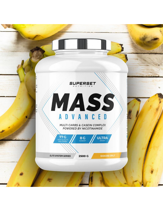 Ingrediënten Bananensplit : maltodextrine 34%, volkoren havermeel (gluten) 22%, dextrose 20%, wasachtig maïszetmeel 10%, instant calciumcaseïnaat (melk) [calciumcaseïnaat (melk), emulgator (mono- en diglyceriden van vetzuren)] 8%, witte chocoladepoeder (sucrose, cacaoboter, melk volkorenpoeder) 3%, aroma's, verdikkingsmiddel (xanthaangom), zuur (citroenzuur), zoetstoffen (sucralose, acesulfaam K), vitamine C (L-ascorbinezuur), niacine (nicotinamide), ananasbromelaïne (1200 GDU/g) 0,02%, papaja papaïne (1,5 FIP U/mg) 0,02%, vitamine B6 (pyridoxine hydrochloride), vitamine B1 (thiaminemononitraat), vitamine B12 (cyanocobalamine).