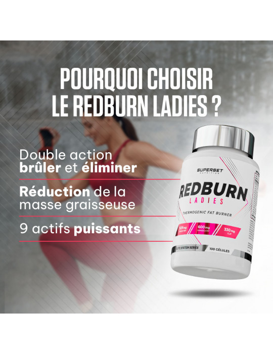 REDBURN LADIES (100 CAPS) is speciaal ontwikkeld om aan de behoeften van vrouwen te voldoen en is samengesteld door de voedingsdeskundigen en sportcoaches van Superset Nutrition. Deze thermogene vetverbrander ondersteunt je in je zoektocht naar afslanken met 9 zorgvuldig geselecteerde actieve ingrediënten.