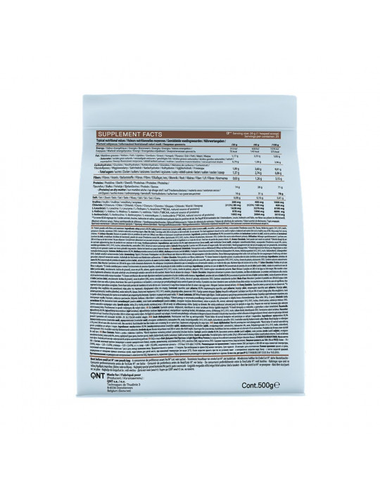Ingrediënten Belgische Chocolade: melkeiwit [wei-eiwitconcentraat (bevat melk), wei-eiwitisolaat (bevat melk)], inuline, cacaopoeder 6%, aroma, verdikkingsmiddelen: E412/E415, kaliumchloride, zoetstof: E955.