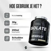 Ingrediënten Chocolade :Instant wei-eiwitisolaat (melk) {wei-eiwitisolaat (melk), emulgator [lecithinen (soja)]} 84%, L-glutamine 5,5%, ontvette cacaopoeder, aroma's, pure chocolade melk chocoladepoeder melk (sacharose, ontvette cacaopoeder, melk poeder, cacaoboter), natuurlijk aroma, zout], zoetstoffen (sucralose, acesulfaam K), instant gehydrolyseerd wei-eiwit (melk) {gehydrolyseerd wei-eiwitisolaat (melk), emulgator [lecithinen (soja)]} 0,15%.