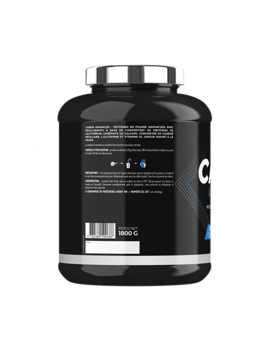 INGREDIËNTEN AARDBEIENYOGHURT : eiwitconcentraat melk 38%, calciumcaseïnaat (melk) [calciumcaseïnaat (melk), emulgator (mono- en diglyceriden van vetzuren)] 36%, micellair caseïneconcentraat (melk) 7,3%, ontvette cacaopoeder, L-glutamine 5,5%, melk volkorenpoeder, aroma's, witte chocoladepoeder (sacharose, cacaoboter), melk poeder), zout, zoetstoffen (sucralose, acesulfaam K), bietenconcentraatpoeder [maltodextrine, concentré de betterave, acide (acide citrique)], zuur (citroenzuur), vitamine D (cholecalciferol).
