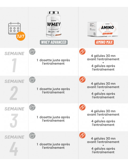 Ingredienten Mango Aardbei :Wei-eiwitconcentraat (op basis vanmelk, emulgator; Lecithine vansoja), aroma's (mango, aardbei), wei-eiwitisolaat (op basis vanmelk, emulgator: lecithine vansoja), wei-eiwithydrolysaat (op basis vanmelk), zoetstoffen (acesulfaam K, sucralose), verdikkingsmiddel (xanthaangom), L-ascorbinezuur, inuline, spijsverteringsenzymen (bromelaïne, ananas-bromelaïne-extract, carica papaya-papaïne-extract), nicotinamide, cyanocobalamine, pyridoxinehydrochloride, thiaminemononitraat.