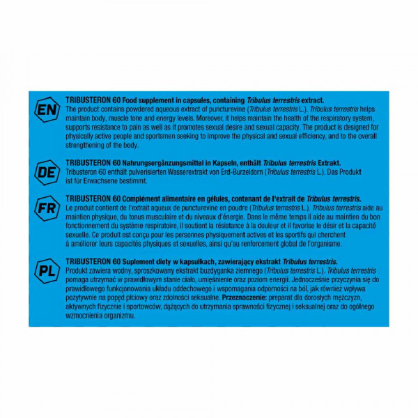 Tribusteron 60 (120 capsules) is een hormoonversterker op basis van plantenextracten, met name tribulus terrestris, een plant die rijk is aan saponinen en waarvan in de traditionele geneeskunde bekend is dat ze een effect heeft op de natuurlijke productie van testosteron.