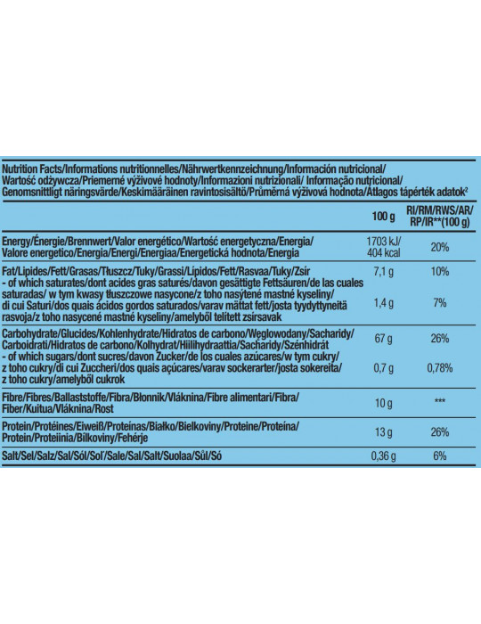 Dit product bevat ongeveer 13 g eiwit per portie, is rijk aan vezels met 10 g per portie en bevat slechts 1,4 g verzadigd vet en 0,7 g suikers .