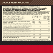 Ingrediënten chocoladesmaak: Wei-eiwitmengsel (93%)[melk] (wei-eiwitisolaat, wei-eiwitconcentraat, gehydrolyseerd wei-eiwitisolaat, emulgator: sojalecithine), mager cacaopoeder, aroma's, verdikkingsmiddel (xanthaangom), zoetstoffen (sucralose, acesulfaam K).