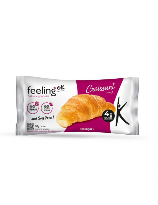 Feeling OK De proteïnecroissant met zoetstof uit is een royaal gebakje met een 100% Italiaanse smaak, perfect geschikt voorsport- of afslankdiëten.