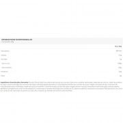 Ingrediënten Cappuccino: Eiwitmengsel (wei-eiwitisolaat, albumenpoeder, gehydrolyseerd eiwit, calciumcaseïnaat, soja-eiwitisolaat), bevochtigingsmiddelen [glycerol (bevat soja), maltitolen], palmvet, fructooligosachariden, water, mager cacaopoeder, soja-extrudaat, mager cacaopoeder, emulgator: lecithine(soja), geleermiddelen (carrageen, kaliumchloride), aroma's, oploskoffie (0,4%), kaneel, conserveermiddel (kaliumsorbaat), zoetstof (sucralose), DL-alfa-tocoferolacetaat. LET OP: bevat cafeïne (18 mg/100 g), niet aanbevolen voor kinderen of zwangere vrouwen.