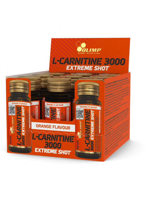 De l-carnitine 3000 extreme shot box (9X25ml) bevat 9 shots L-carnitine, 25ml per stuk, van het merk Olimp Sport Nutrition. Dit voedingssupplement is bedoeld voor mensen die willen afslanken en hun figuur een nieuwe vorm willen geven.