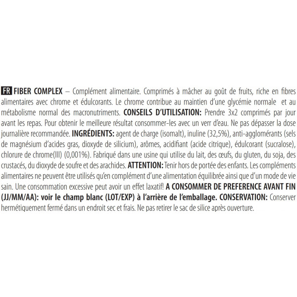 Fiber Complex is gebaseerd op voedingsvezels (inuline) en chroom. Voedingsvezels helpen een goede gezondheid te behouden. Met 3,1 g inuline (2,7 g vezels) is Fiber Complex een goede bron van vezels.
