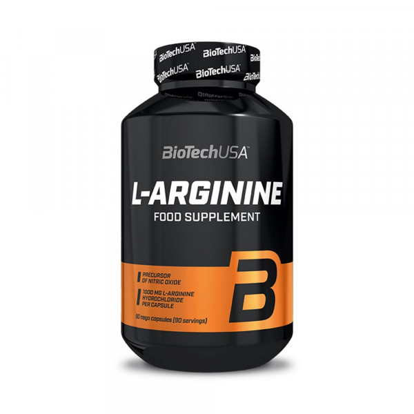 L-arginine (90 caps) is een voedingssupplement van het merk Biotech USAmerk, op basis van arginine in capsulevorm (gewicht van een capsule = 1,18 g).