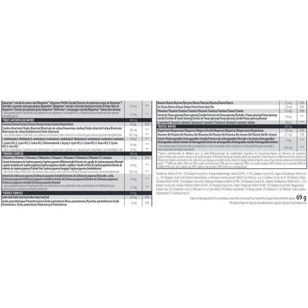 De'Mentale matrix' tenslotte bevat magnesium, vitamine B6 en ashwagandha-extract. Magnesium draagt bij aan een normale spierfunctie en helpt het zenuwstelsel normaal te functioneren. Vitamine B6 ondersteunt de normale werking van het immuunsysteem.