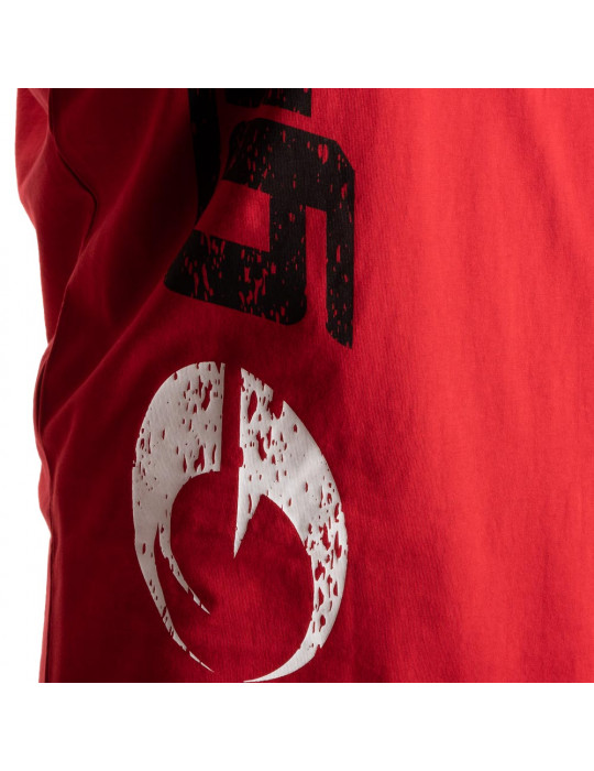 Het is zeer comfortabel, gemaakt van een mix van 85% katoen en 15% polyester. Het materiaal is medium dik jersey, de halslijnen zijn geribd en het T-shirt heeft een visgraatstreep aan de binnenkant van de kraag.