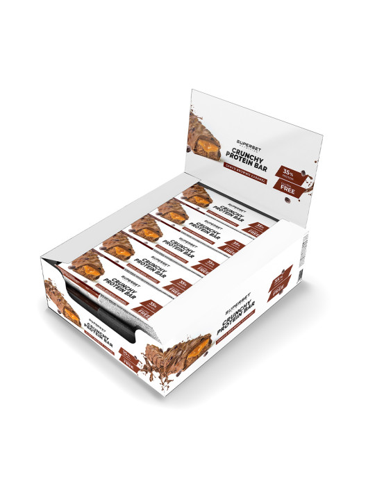 Ingrediënten Choco Brownie Karamel : volle melkchocolade met zoetstof (zoetstof (maltitol), cacaoboter, volle melkpoeder, cacaomassa, emulgator (lecithine), natuurlijk bourbon vanille aroma) 26,7%, melkeiwit (wei-isolaat, calciumcaseïnaat), vulling met karamelsmaak (vulstof (polydextrose), zoetstof (maltitol), ongehard plantaardig vet (kokosolie, sheaboter), cacaoboter, kleurstof (appel- en hibiscusconcentraat), emulgator (lecithine), zout, natuurlijk aroma) 12,5%, bevochtigingsmiddel (glycerol), melkeiwit (melkeiwit, melkeiwithydrolysaat), soja-eiwit crispies (soja-eiwitisolaat, cacaopoeder, tapiocazetmeel) 8,33%, collageenhydrolysaat (rund), water, pure chocolade met zoetstof (cacaomassa, zoetstof (maltitol), cacaoboter, emulgator (lecithine), natuurlijk bourbon vanille aroma) 2,50%, magere cacaopoeder, aroma, microkristallijne cellulose, zout.