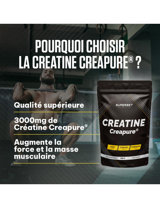 Creapure® CREATINE MONOHYDRATE (500G) is een gemicroniseerde creatine ontwikkeld door de voedingsdeskundigen van het merk Superset Nutrition. Het onderscheidt zich door zijn micronisatieproces, dat de grootte van de deeltjes aanzienlijk vermindert, waardoor ze 10 tot 20 keer kleiner worden dan die van traditionele creatine, waardoor hun oplosbaarheid en verteerbaarheid voor een optimale absorptie verbetert.