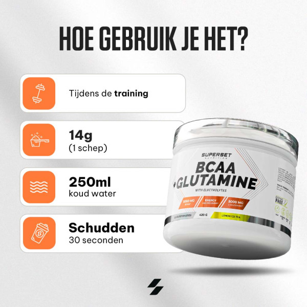BCAA + GLUTAMINE (450G) van Superset Nutrition is een must-have voor alle sporters, of je nu triatleet, wielrenner, marathonloper of bodybuilder bent. Deze formule bevat een hoge dosis actieve ingrediënten om je uithoudingsvermogen te ondersteunen, maar dat is nog niet alles!